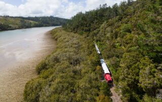 Through the Cruise Ship season we may offer return coach packages between Paihia and Kawakawa Station (20 minutes). This makes it easy to meet the train, grab a coffee at the Railway Station Cafe and enjoy the vintage rail experience. Leaving you more time to explore the natural beauty and history of this incredible part of the Bay of Islands, Aotearoa New Zealand. Return trip to Paihia, approximately 3 hours, plus the option to look around Kawakawa township – art gallery, museum, unique retail, food and the world-famous Hundertwasser Toilets.